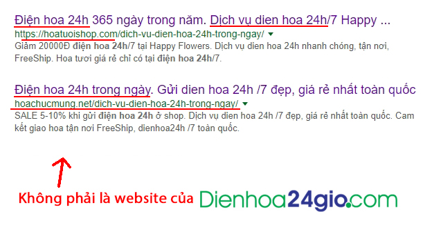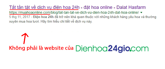 Đầu tiên là tên website, chúng tôi chạy một website chính là Dienhoa24gio.com ngoài ra chúng tôi không có bất cứ một website nào khác với thương hiệu Điên hoa 24h.