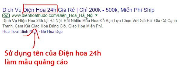 Sử dụng tên hoặc thương hiệu Điện hoa 24h trong kỹ thuật seo