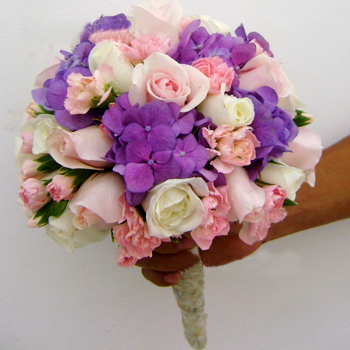 Và bạn nghĩ sao về bó hoa cưới cô dâu với gam màu tím của hoa cưới cẩm tú cầu màu tím lại được kết hợp ăn ý cùng với hoa hồng, hoa cẩm chướng hồng nhẹ. Thật tuyệt vời đúng không nào, khi này gam màu hoa tím sẽ thật nổi bật và gây chú ý mạnh mẽ với người nhìn.