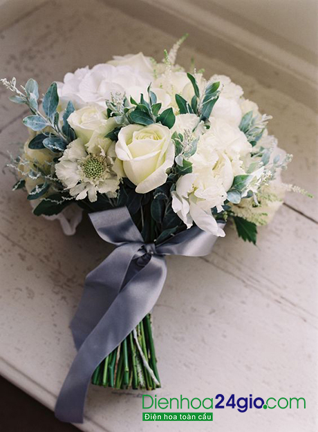 Do cô dâu mệnh Thủy hợp với gam màu trắng và đen, do đó sự lựa chọn dành cho nàng khá hạn chế về gam màu. Nhưng bù lại với màu trắng thì nàng lại có thể thoải mái tha hồ lựa chọn những bó hoa màu trắng với các loại hoa khác nhau, hơn nữa hao cưới màu trắng cũng chính là gam màu chủ đạo của hầu hết các bó hoa cưới.