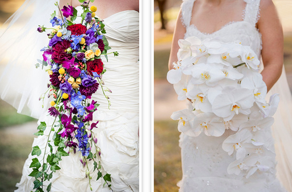 Bó hoa cưới dáng dài bằng hoa lan trắng được kết khéo léo tạo dáng dài như dòng suối trắng thơ mộng. Phần nhị hoa màu vàng điểm tô trên bó hoa khiến cho chúng càng trở nên hấp dẫn và tinh tế vạn phần. Hoặc bó hoa cưới dáng dài cô dâu làm từ hoa lan tím cũng là gợi ý không tồi. Nó rất thích hợp cho không gian cưới cổ tích lãng mạn có chút bay bổng.