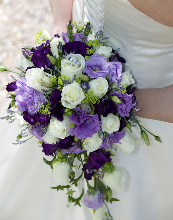 Mẫu hoa cưới hoa cát tường màu tím được kết hợp cùng những bông hoa hồng màu trắng mới thật nổi bật làm sao. Hơn nữa gam màu trắng và tím chính lại chính là gam mau thời gian gần đây được nhiều người lựa chọn làm màu chủ đạo trong đám cưới của mình. Thể hiện cho sự trong sáng, thủy chung son sắc bằng màu tím lãng mạn.
