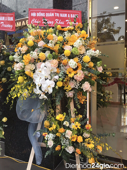 Quan sát tổng thể mẫu hoa vô cùng bắt mắt, thu hút và tạo ấn tượng mạnh cho quan khách khi đến tiệc khai trương.