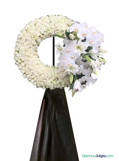 Vòng hoa tang lễ với màu trắng chủ đạo