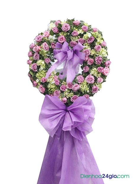 Vòng hoa tang lễ với màu tím chủ đạo