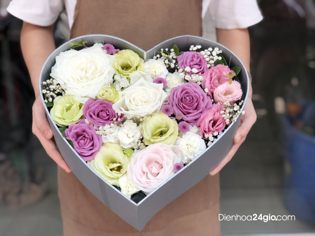 Các mẫu hoa tươi trang trí trong hộp hình trái tim, hình tròn, hình tam giác, hình chữ nhật hay hình vuông,...Tạo nên nét riêng độc đáo và mới lạ phù hợp để làm quà tặng những người thân yêu vào bất kỳ dịp đặc biệt nào.