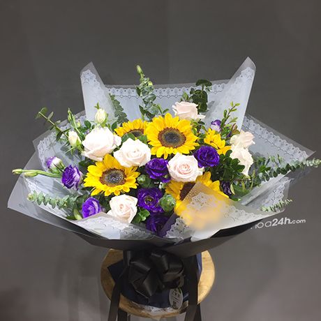 Nhắc đến các mẫu hoa sinh nhật dành tặng bố vợ không thể bỏ qua mẫu hoa tươi này. Bó hoa hướng dương sắc vàng tỏa nắng rực rỡ mang đến món quà sinh nhật vừa đẹp vừa hợp phong thủy.