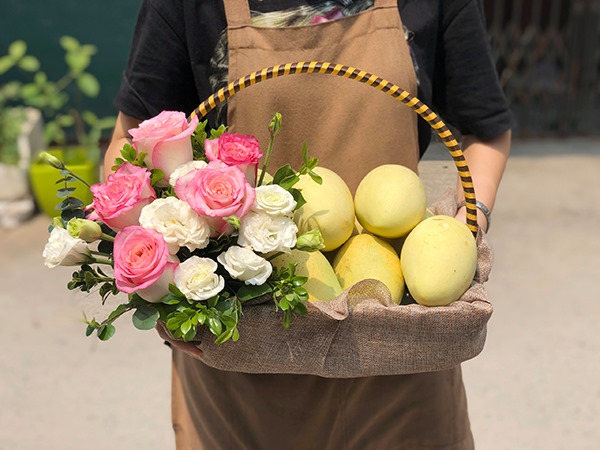 Giỏ hoa hồng và xoài