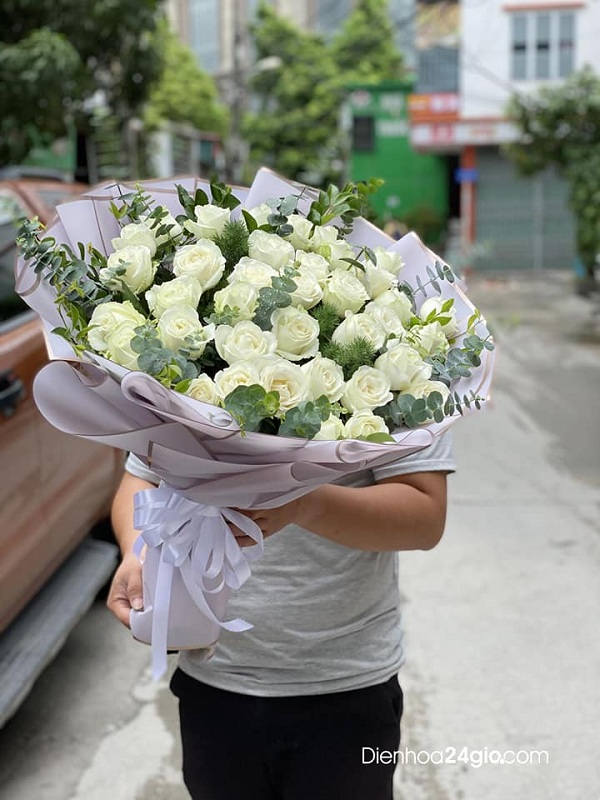 Bó hoa hồng trắng tượng trưng cho tình bạn trong sáng hay là sự ngọt ngào nhẹ nhàng