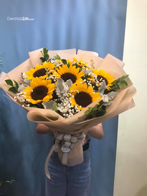 Món quà về tình yêu thủy chung và son sắt. Màu vàng của đóa hoa hướng dương còn thể hiện tình cảm chân thành và ấm áp. Khi tặng hoa hướng dương cho nửa kia sẽ thay lời nhắn nhủ: “Tình yêu của anh chỉ dành riêng cho em và dù ở đâu thì ánh mắt của anh vẫn luôn hướng về em”.
