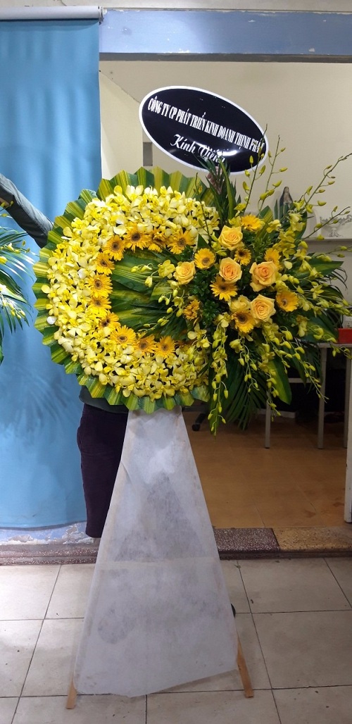 Những vòng hoa tang lễ màu vàng cũng được nhiều người lựa chọn, gam màu này tạo không gian thăng trầm, hoài niệm cho người đến viếng.