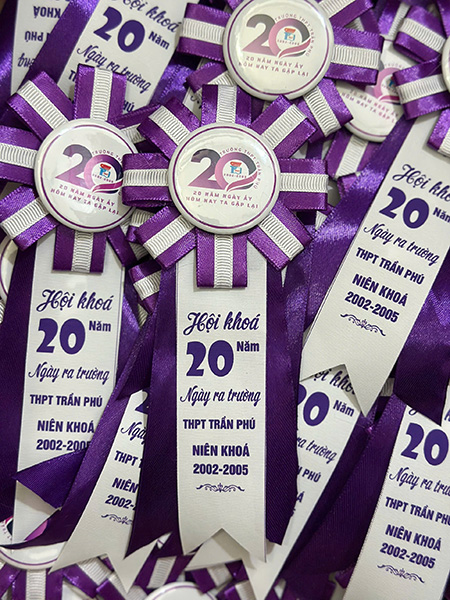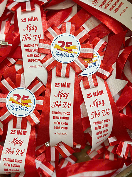 • Phối thêm nơ lụa, logo trường, bảng tên sự kiện.
