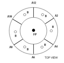 Cách cắm hoa này chính là cắm hoa kiểu tròn nếu ta nhìn theo góc từ trên xuống dưới, kiểu cắm hoa này trông rất đẹp mặt và phần lớn các bông hoa được xếp theo hình tròn và chiều cao các bông hoa không quá cao mà ở mức trung bình nên nhìn rất tiện mắt. Kiểu cắm hoa này đơn giản thủ công nhưng liên kết giữa các bông hoa rất chặt chẽ và tạo ra sự gắn kết tổng thể cho lẵng hoa.