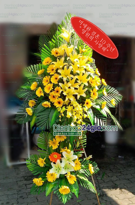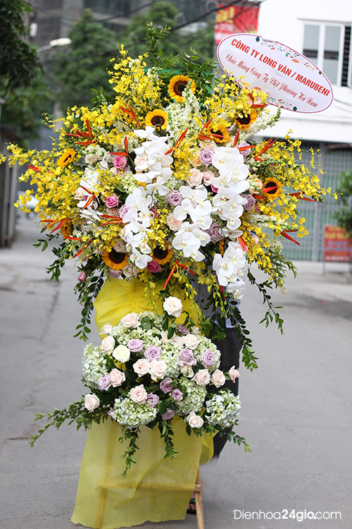 Điện hoa 24h có các lẵng hoa, kệ hoa khai trương được bàn tay khéo léo của các thợ cắm hoa lành nghề kết từ những loại hoa ý nghĩa cho lễ khai trương như hoa đồng tiền, hoa lan, hoa ly, hoa hướng dương... Hoa khai trương tại Điện hoa 24h đẹp và tinh tế bởi từng bông hoa, cành hoa được lựa chọn cẩn thận sao cho tươi nhất, đẹp nhất, cánh hoa không bao giờ có chuyện dập nát hay héo úa mà luôn tràn đầy nhựa sống.