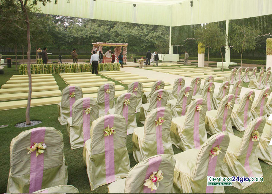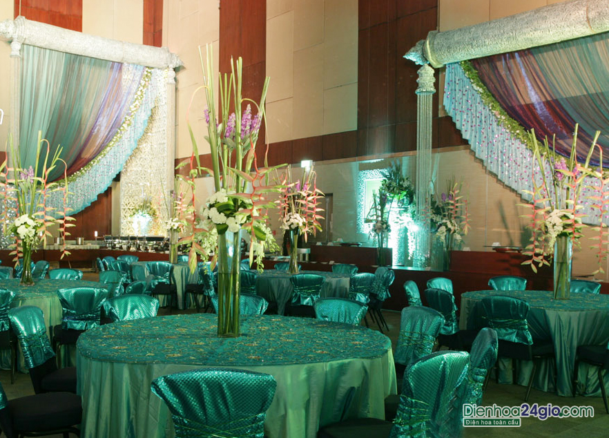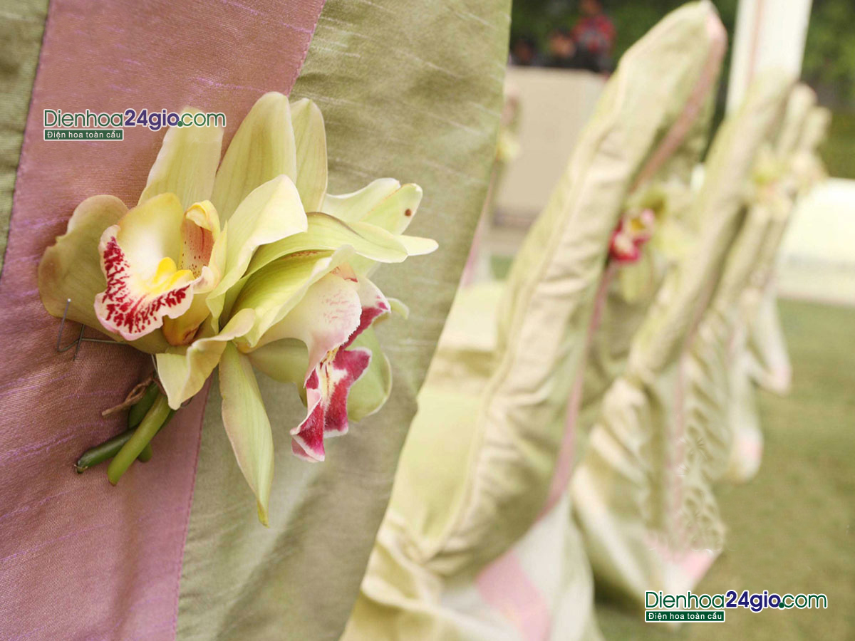 Dùng địa lan và hoa tươi trang trí tiệc cưới.