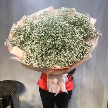 Hoa baby hay còn gọi là hoa chấm bi có tên gọi tiếng anh là “Baby’s breath”. Những bông hoa nhỏ xinh kết thành bụi lớn với gam màu trắng bao phủ tạo nên nét đẹp thanh mảnh mà lại phi thường. Trên thị trường hiện nay Baby được bày bán phổ biến với nhiều màu