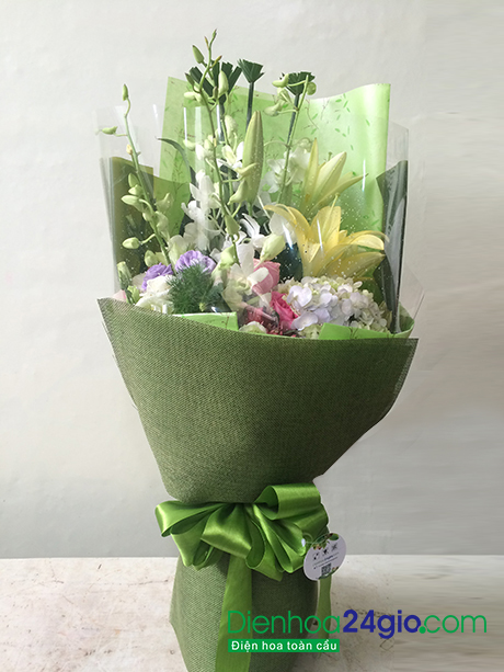 Chọn hoa sinh nhật màu đỏ, vàng quá nhàm chán thì bạn nên tìm đến các mẫu hoa với gam màu xanh mướt mắt. Hoa tươi màu xanh không chỉ tạo nên tổng thể mới lạ mà vẫn thể hiện được ý nghĩa trong từng món quà sinh nhật.