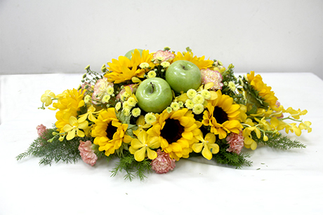 Không khí buổi họp sẽ được xua tan đi phần nào đó căng thẳng khi có sự góp mặt của những lẵng hoa bàn họp, tưởng chừng như vô tri vô giác ấy.